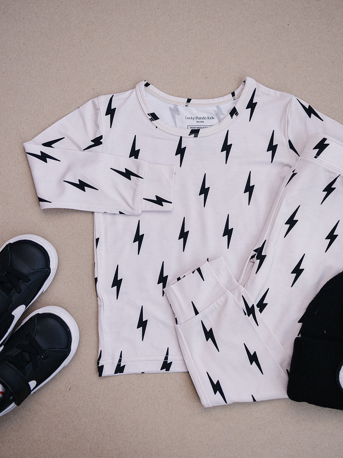 Little Bolt adds a modern spark to this everyday essential. Crafted from buttery soft bamboo with just the right stretch, this set is made to move, lounge, and grow with your little one.
