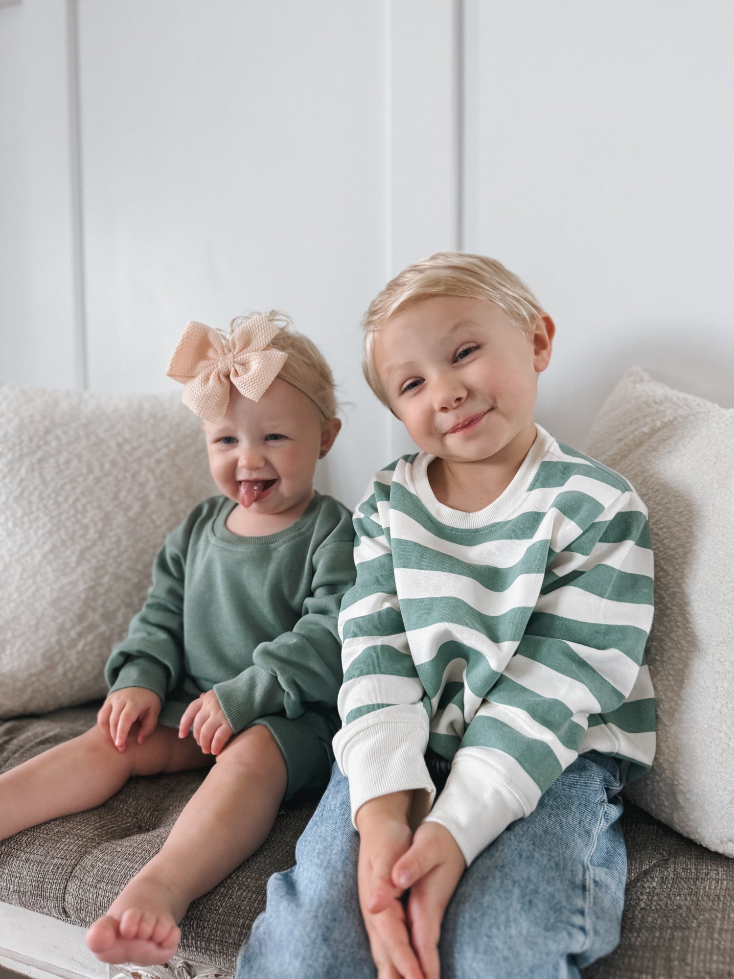 STRIPES ARE IN!! Our Classic Striped Sweatshirt is very soft, lightweight, and perfect for layering or wearing solo. Made for any season, this will be your littles new favorite sweatshirt.