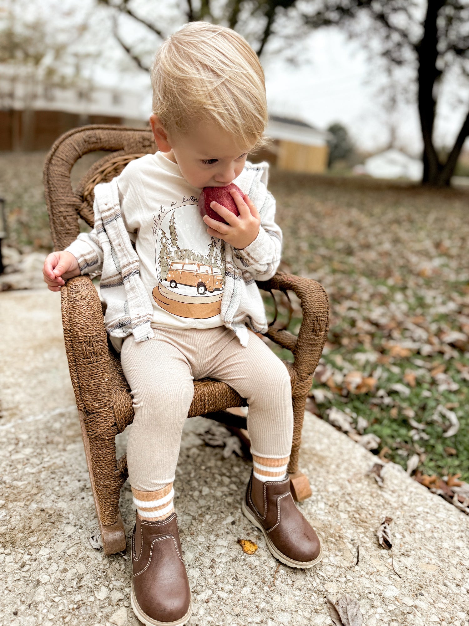 Adorable neutral holiday tee! Available in sizes 6M-YM